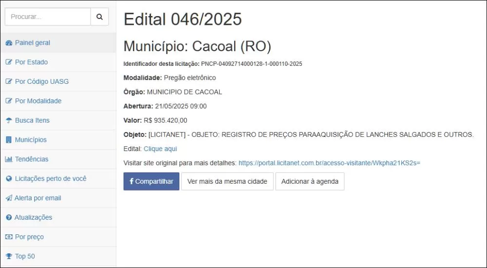 Link oficial: Licitações Cacoal-RO | Edital 046/2025