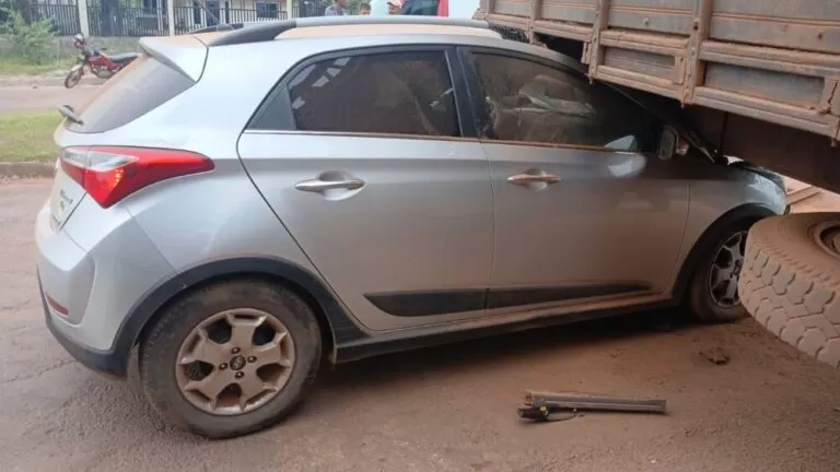 Segundo informações apuradas no local, o caminhão estava com a cabine dentro de uma residência, enquanto a traseira se projetava para fora, invadindo parcialmente a rua. Ainda não se sabe se o veículo estava manobrando para entrar ou sair do imóvel no momento da colisão. O motorista do HB20 não conseguiu evitar o choque e atingiu a parte traseira lateral do caminhão.