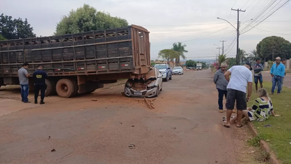 Na manhã deste sábado (2), um grave acidente de trânsito foi registrado na Avenida Fortaleza, próximo à Rua Paranaíba, no bairro Industrial de Rolim de Moura (RO). Um Hyundai HB20 colidiu de forma violenta na traseira de um caminhão de transporte de gado, deixando a parte dianteira do carro parcialmente destruída.