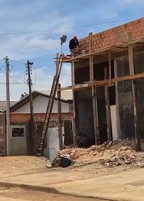 O registro foi feito por Valtair Leite, morador do bairro Presidencial, que passava pela obra por volta das 11h da manhã quando se deparou com o trabalhador no alto do andaime, com um ventilador ligado bem ao lado, enfrentando o sol intenso de Ji-Paraná.